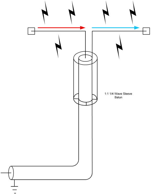 Schéma libre (domaine public) d’un sleeve balun / bazooka.
